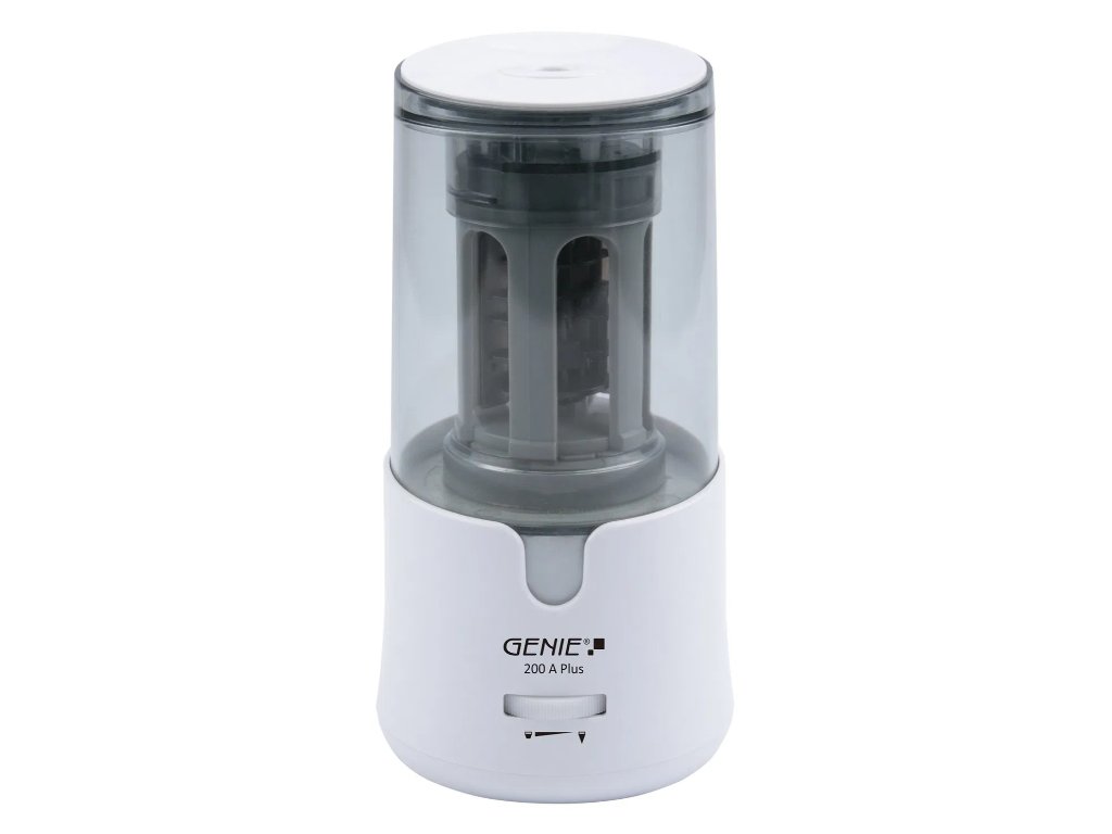 Elektrické ořezávátko GENIE 200A Plus vám dokonale usnadní ořezávání tužek. Tužku či pastelku ostrouhá velmi snadno a rychle a vytvoří perfektně ostrý hrot. Je vhodné pro tužky a pastelky o průměru 6-12 mm a ořeže klasické i trojhranné tužky. Elektrické ořezávátko disponuje nastavovacím kolečkem, které umožní nastavení ostří špičky. Ořezávání se zastaví, jakmile bude dosaženo nastaveného průměru špičky. Opotřebovanou tužku přitom ořeže za 2 sekundy, zatímco novou za přibližně 5 sekund. O to se postará kvalitní ocelová frézka, která zaručí minimum hoblin.