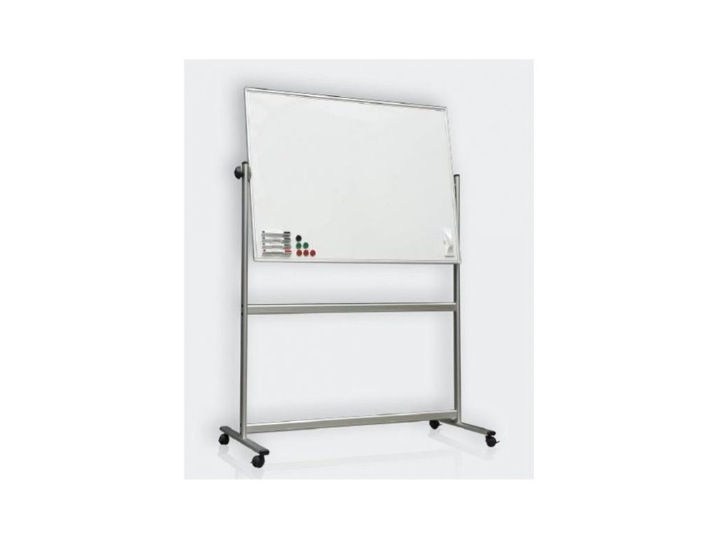Magnetická oboustranná tabule s horizontálním otáčením na mobilním stojanu.